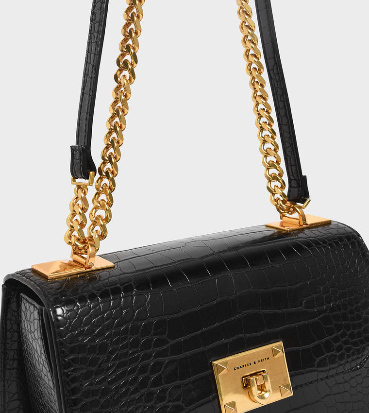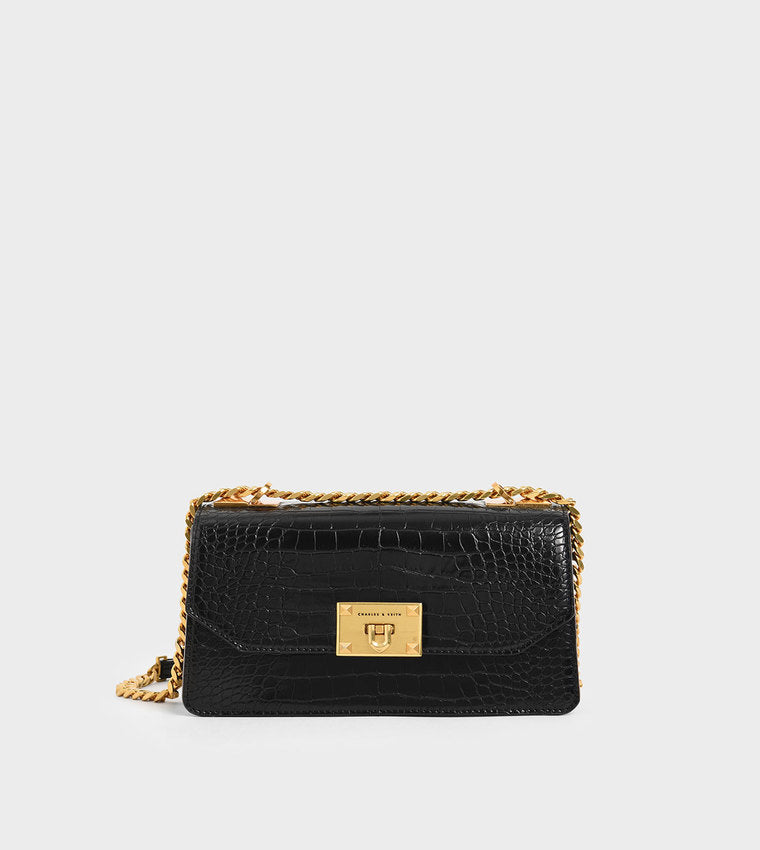 Charles & Ke*th - Croc-Effect Chain Strap Crossbody Bag- Black (AD-SEP)