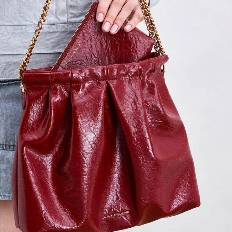 Charles & Ke*th - Duo Double Chain Hobo Tote Bag - RED (AD-July)