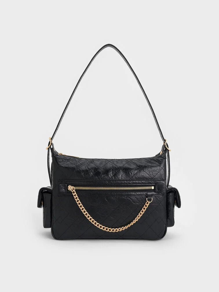 Charles & Ke*th - Duo Metallic Quilted Shoulder Bag - Black (AD-SEP)
