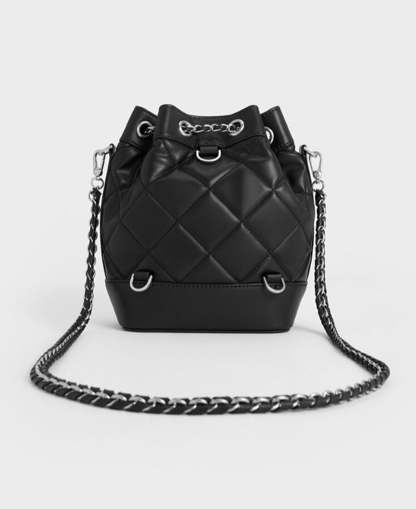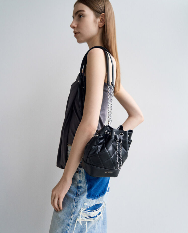 Charles & Ke*th - Julia Quilted Two-Way Bucket Bag - Noir (AD-DEC-IR-R-LT)