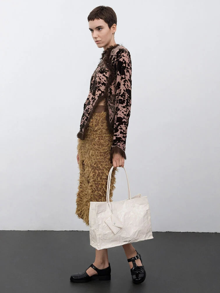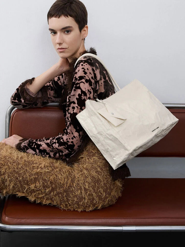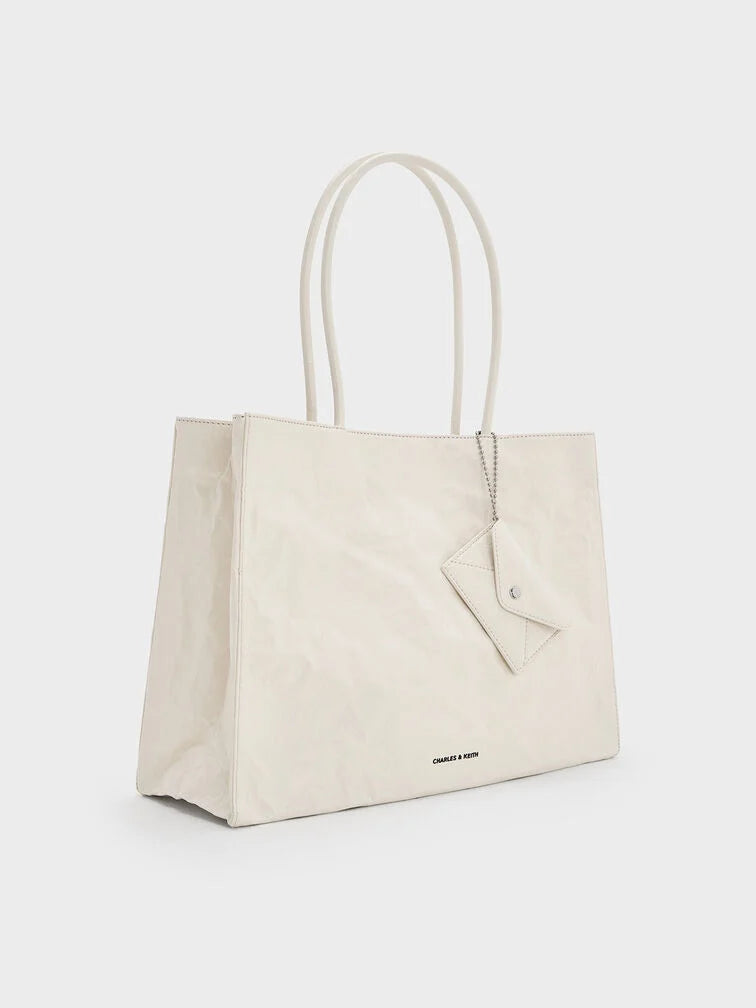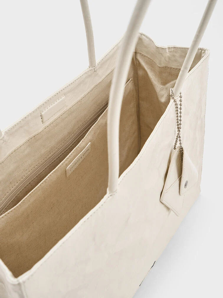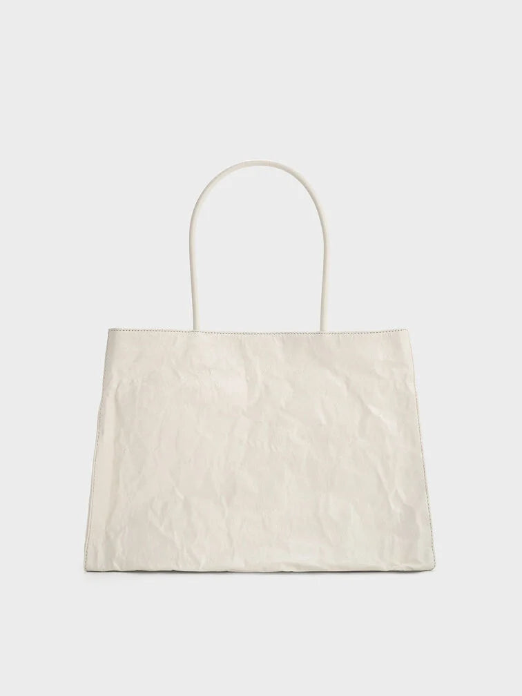 Charles & Ke*th - Large Matina Crinkle-Effect Tote Bag - Cream (AD-NOV-LT)