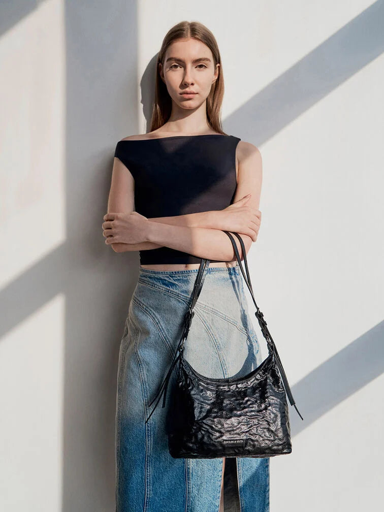 Charles & Ke*th - Lark Crinkle-Effect Hobo Bag - Noir (AD-NOV-LT)