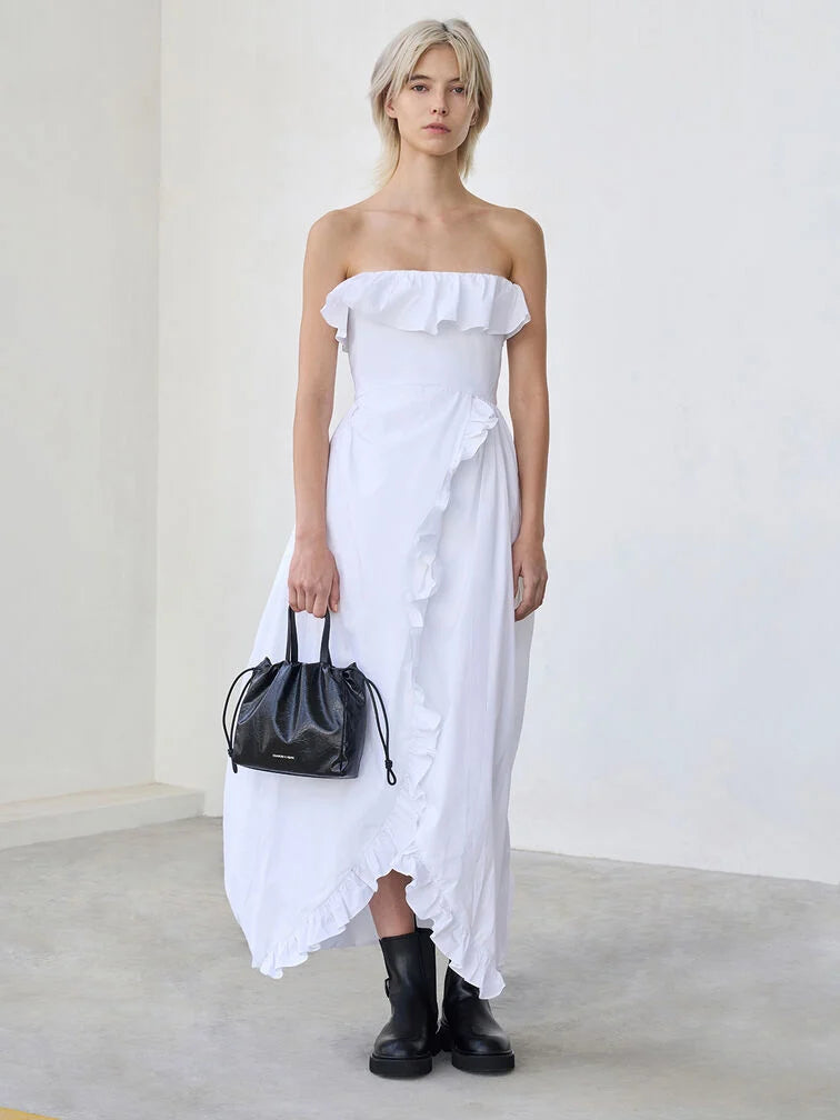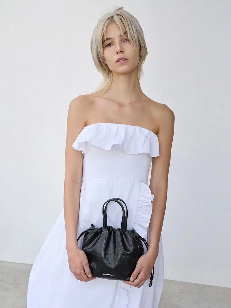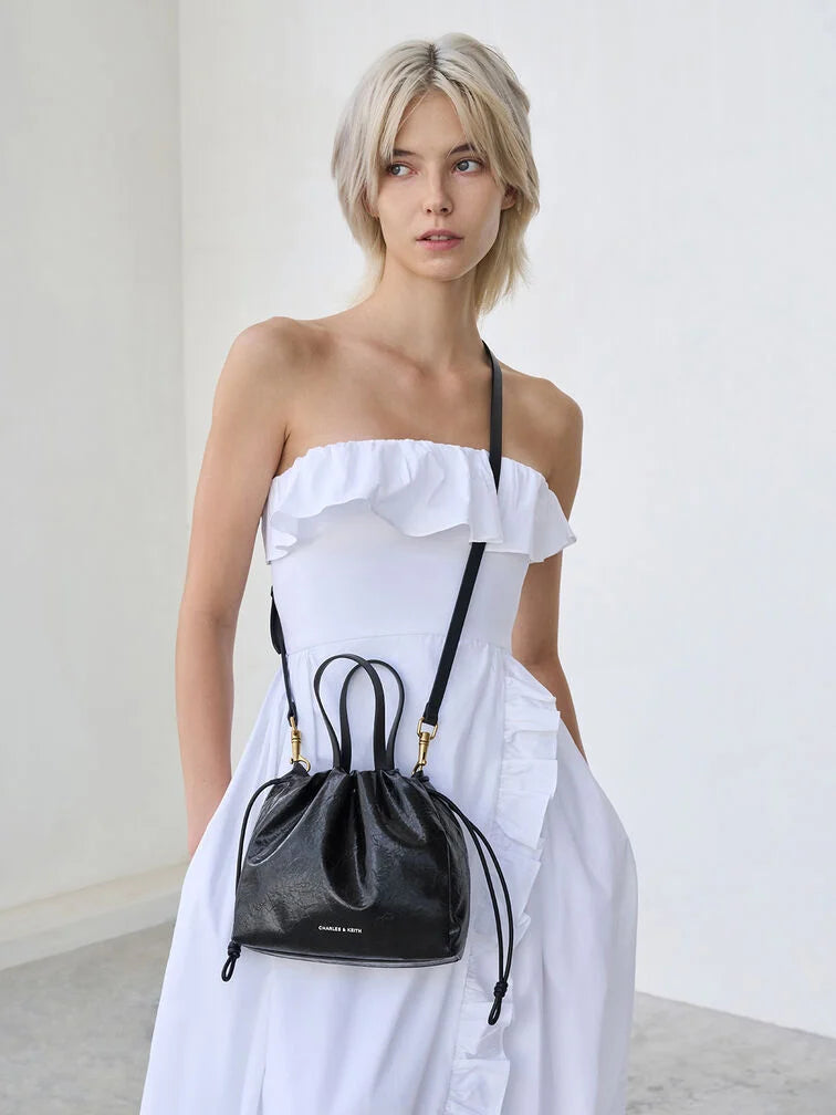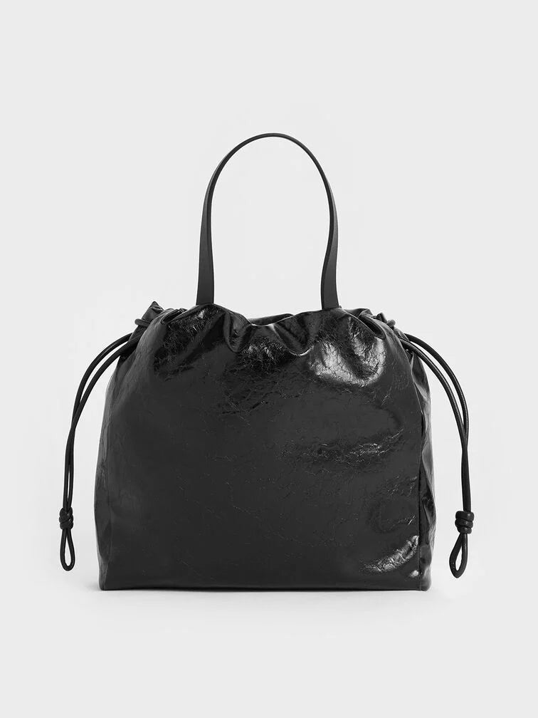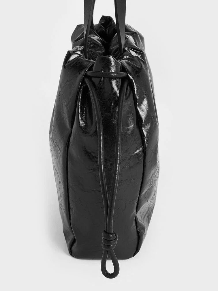Charles & Ke*th - Mini Bethel Crinkle-Effect Ruched Drawstring Tote Bag - Black (AD-NOV-LT)