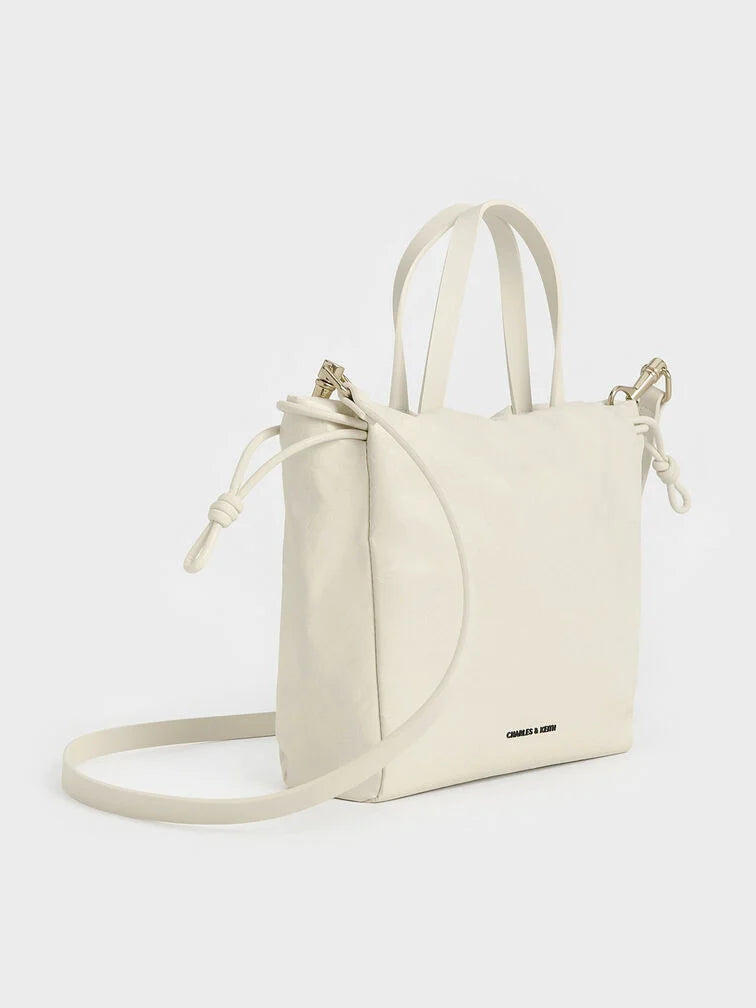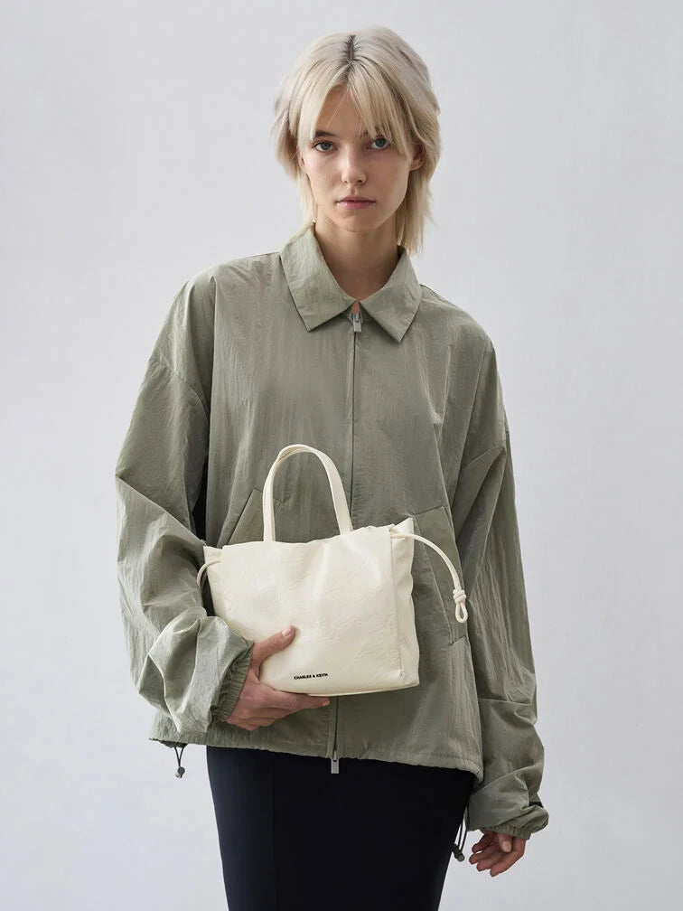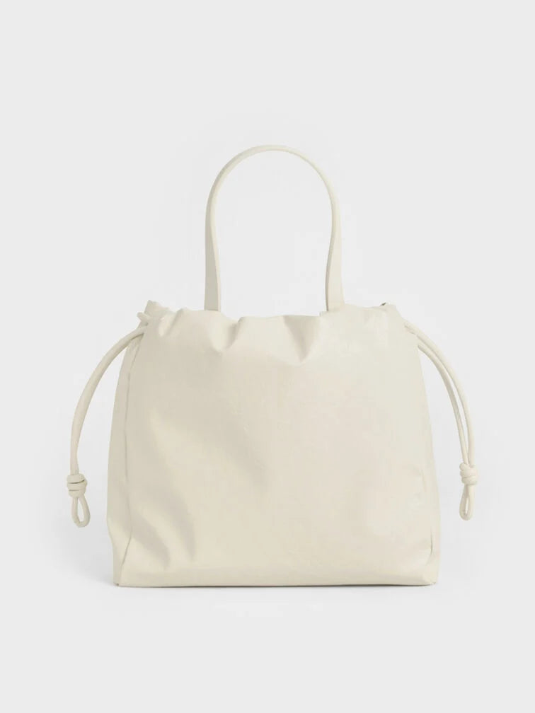 Charles & Ke*th -  Mini Bethel Crinkle-Effect Ruched Drawstring Tote Bag - Cream (AD-NOV-LT)