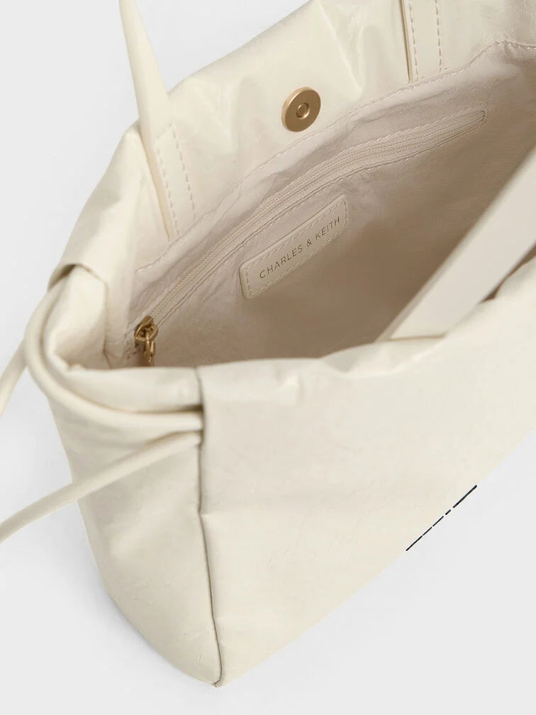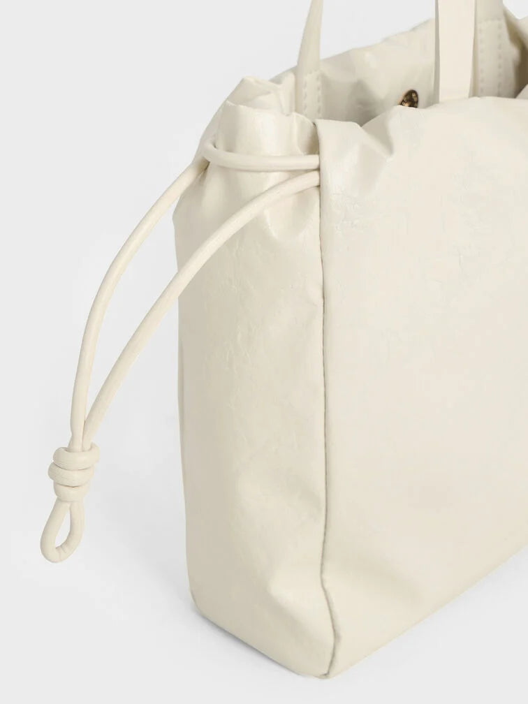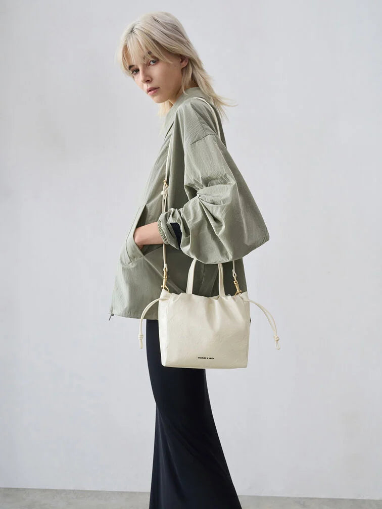 Charles & Ke*th - Mini Bethel Crinkle-Effect Ruched Drawstring Tote Bag - Cream (AD-NOV-LT)